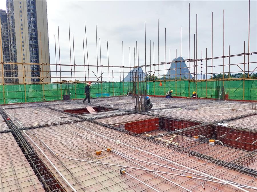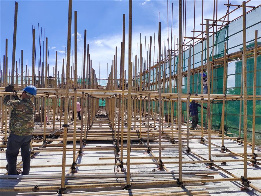 在項(xiàng)目現(xiàn)場,每天有50多名工人頂著高溫,相互配合,有條不紊地進(jìn)行鋼筋加工、綁扎鋼筋、混凝土澆筑等工作。為了趕工期,他們時(shí)常加班加點(diǎn)工作到深夜,同時(shí)還認(rèn)真按照工藝標(biāo)準(zhǔn)逐條逐項(xiàng)落實(shí)每一項(xiàng)細(xì)節(jié),嚴(yán)把工藝質(zhì)量。