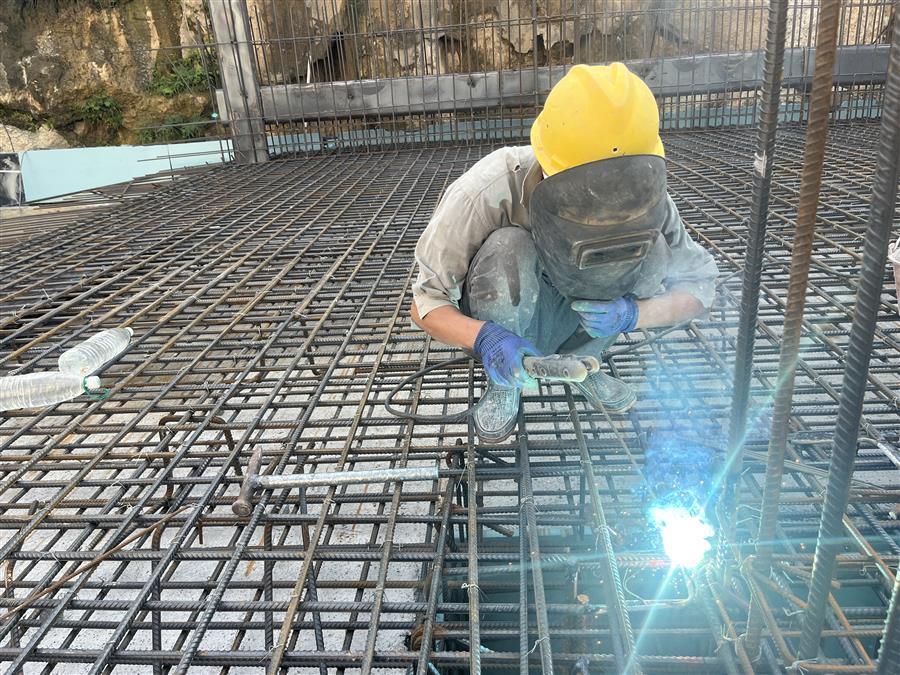 在項目現(xiàn)場,工人們頂著烈日堅守崗位。鋼筋綁扎工人一手固定住鋼筋,一手熟練地把鋼筋綁扎好;電焊工人“全副武裝”,一手舉著防護面罩,一手拿著焊槍嫻熟作業(yè);抹灰工人飛舞著抹灰刀,熟練地向墻面抹水泥砂漿;安裝工人操作電鉆將門窗穩(wěn)穩(wěn)地安裝到位……熱火朝天的大干現(xiàn)場依然井然有序。
