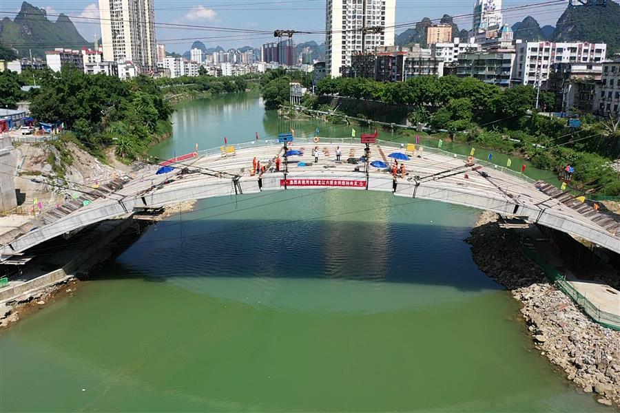 8月3日,隨著最后一節(jié)(第98節(jié))砼拱箱精準(zhǔn)吊裝至預(yù)定位置,標(biāo)志著冶建公司桂金分公司承建的河池市龍江六橋(輝樂(lè)橋)順利實(shí)現(xiàn)主拱圈全面合龍。公司黨委副書(shū)記、紀(jì)委書(shū)記、工會(huì)主席賴(lài)海標(biāo)到現(xiàn)場(chǎng)指導(dǎo)。