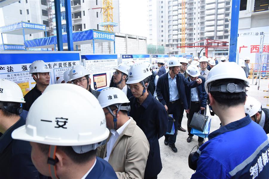 春雨潤邕,綠意蔥蘢。4月10日,集團(tuán)公司2023年第二季度安全生產(chǎn)工作會議暨質(zhì)量安全標(biāo)準(zhǔn)化現(xiàn)場觀摩會,在冶建公司桂鴻分公司施工的北投時代(二期)項目舉行。集團(tuán)公司總經(jīng)理、黨委副書記、董事羅濤,副總經(jīng)理陳禮松,總經(jīng)理助理、企業(yè)管理部總經(jīng)理、市場經(jīng)營部總經(jīng)理劉新寧,集團(tuán)公司各子公司負(fù)責(zé)人及相關(guān)人員近300人參加了此次觀摩會。