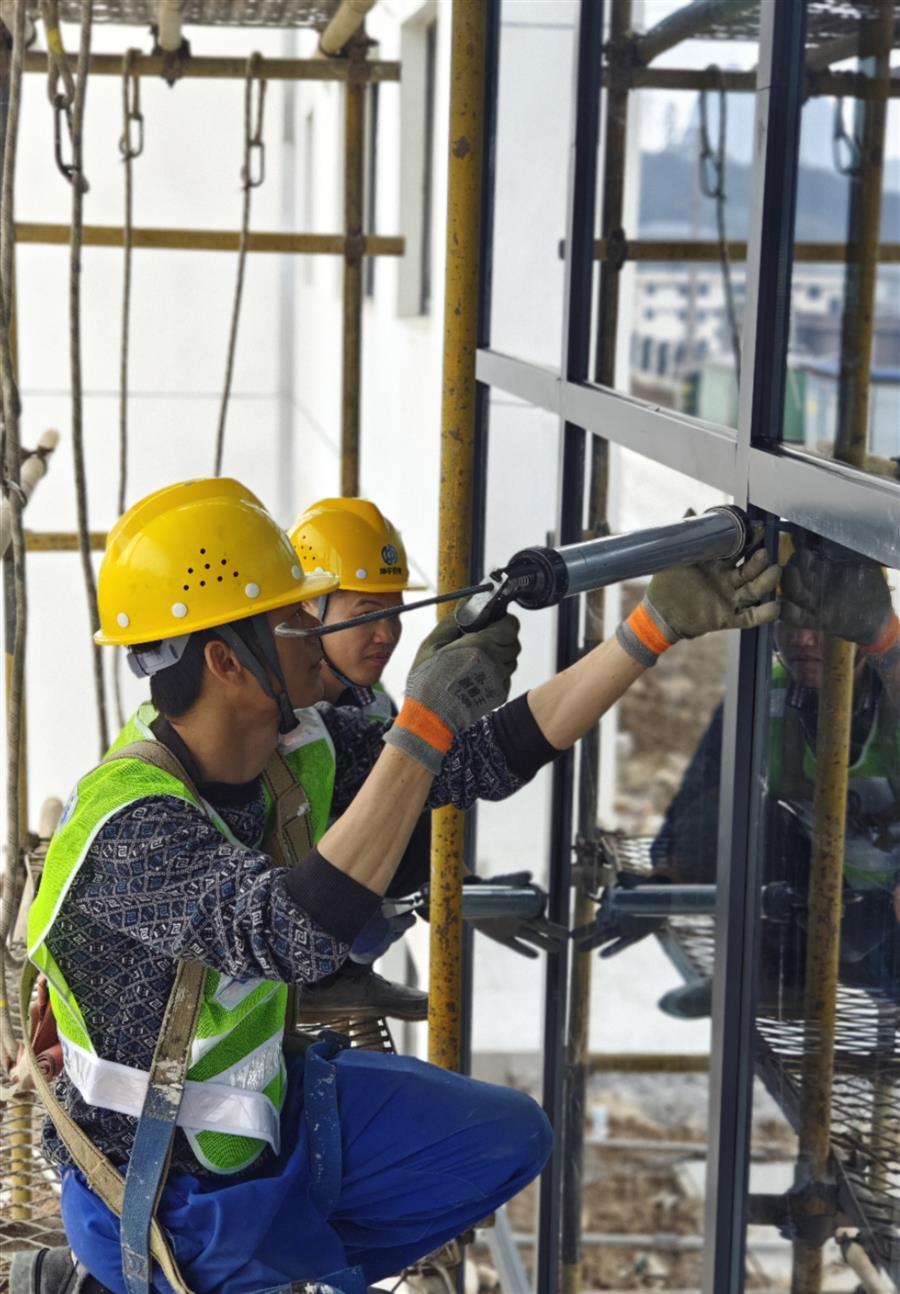 “明德中學項目正在進行宿舍樓外墻涂料和鋁合金窗玻璃膠施工,及綜合體育館和宿舍樓天面打磨等施工;明德小學項目正在進行2#、3#綜合教學樓主體施工,及午托樓砌筑、綜合體育館網架屋面等施工?!泵鞯轮行W項目管理人員說。兩個學校項目復工復產后,項目人員通力合作、全力以赴,各種施工機械開足馬力、連班作業(yè),保障各項工作有序開展,確保學校民生項目按期交付。