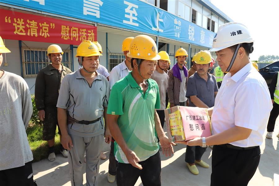 8月7日,冶建公司董事長(zhǎng)、黨委書(shū)記覃振華,總經(jīng)理、黨委副書(shū)記蒙勝益分別到壓力容器制造廠、柳州市柳東新區(qū)明德小學(xué)項(xiàng)目開(kāi)展“送清涼”慰問(wèn)活動(dòng)。