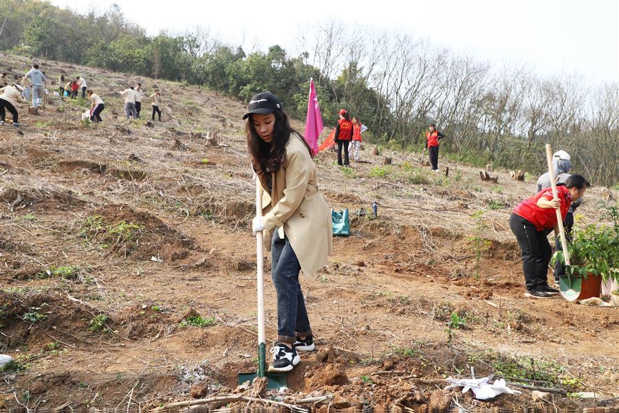 植樹現(xiàn)場,鏟土挖坑、扶苗填土、提水澆灌……志愿者們有序分工、各司其職,每個環(huán)節(jié)銜接有序、有條不紊,合力栽下一株株樹苗,植樹現(xiàn)場處處都呈現(xiàn)出忙碌景象。經(jīng)過大家的辛勤勞動,一株株小樹苗在蓮花山上“安家落戶”,為蓮花山增添了一道道靚麗的風(fēng)景線。