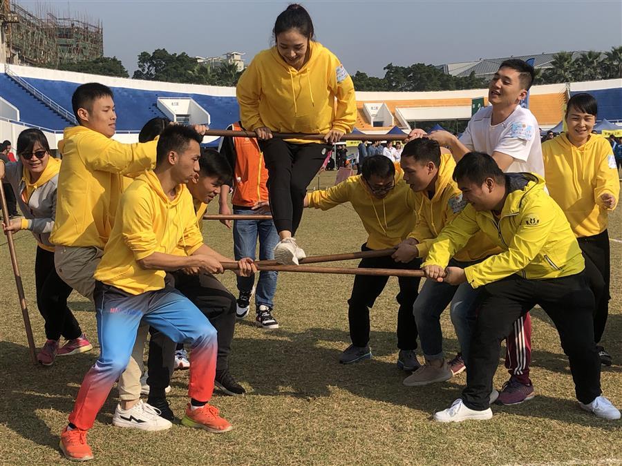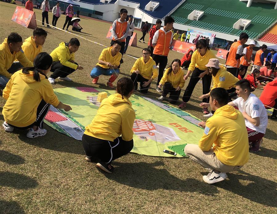 此次趣味運動會由柳州市總工會組織,活動共為五個項目分別為迷宮逃脫、步步為贏、毛毛蟲競賽、合力建塔、趣味投籃。